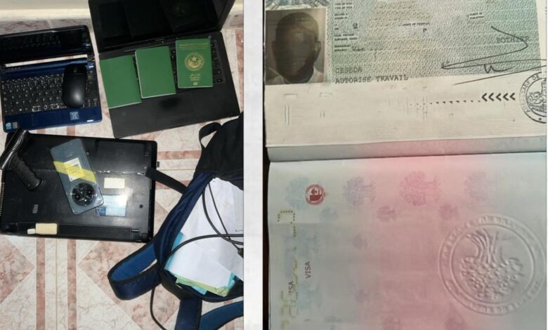 وأردفت أن البحث كشف أن زعيم الشبكة أجنبي، ويسمى “ه. ج”، وتم توقيفه في منزله بمقاطعة الميناء، وضبطت بحوزته خمسة جوازات سفر تحمل تأشيرات أوروبية مزورة.