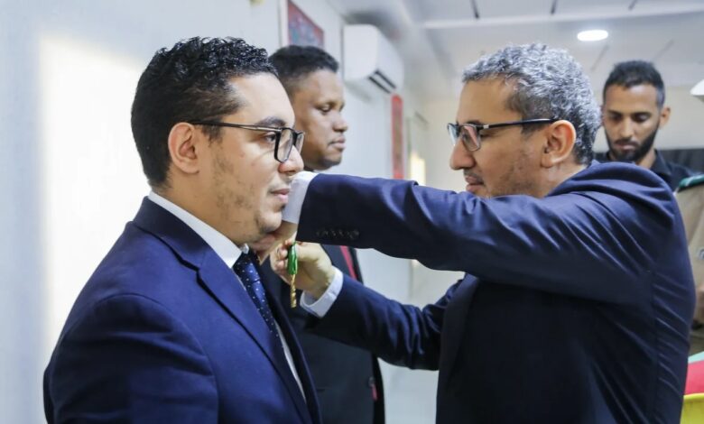 وشملت التوشيحات منح وسام فارس في نظام الاستحقاق الوطني للمدير العام للإدارة الإدارية محمد عبد الله ابيبكر، ووسام الامتنان الوطني للمدير العام للأسواق المالية محمد أحمد ممون.