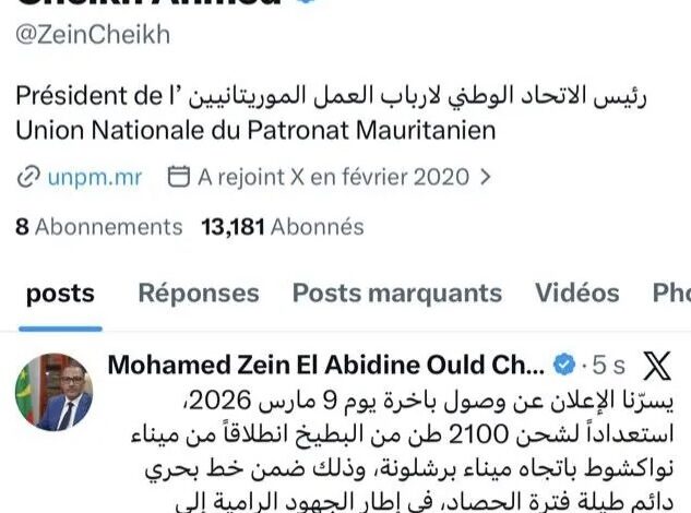 أعلن رئيس الاتحاد الوطني لأرباب العمل الموريتانيين، زين العابدين ولد الشيخ أحمد، استعداد موريتانيا لشحن 2100 طن من البطيخ إلى الأسواق الأوروبية، على أن تغادر الباخرة ميناء ميناء نواكشوط متجهة إلى برشلونة يوم 9 مارس الجاري.