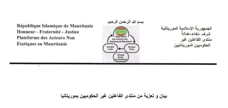 بيان وتعزية من منتدى الفاعلين غير الحكوميين بموريتانيا