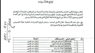 وزارة تمكين الشباب تصدر إنذارًا رسميًا لـ64 موظفًا
