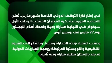 أعلنت الاتحادية الموريتانية لكرة القدم أن المنتخب الوطني سيكتفي بخوض مباراة ودية واحدة خلال فترة التوقف الدولي لشهر مارس، وذلك…