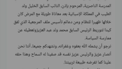 الإعلان عن رحيل النائب السابق الخليل ولد الطيب والاساتذ الكبير احمدو الشاش من اول المعزين