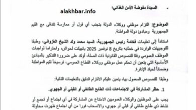 شدد وزير الداخلية محمد أحمد ولد محمد الأمين، على ضرورة تنفيذ تعليمات رئيس الجمهورية محمد ولد الشيخ الغزواني، في محاربة…